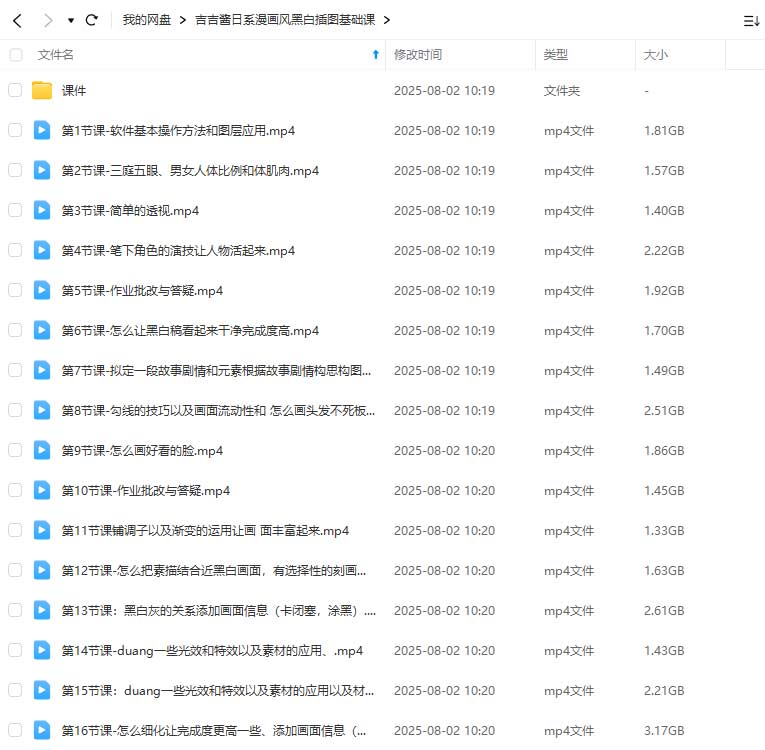 吉吉酱日系漫画风黑白插图基础课2025年(高清画质带课件)